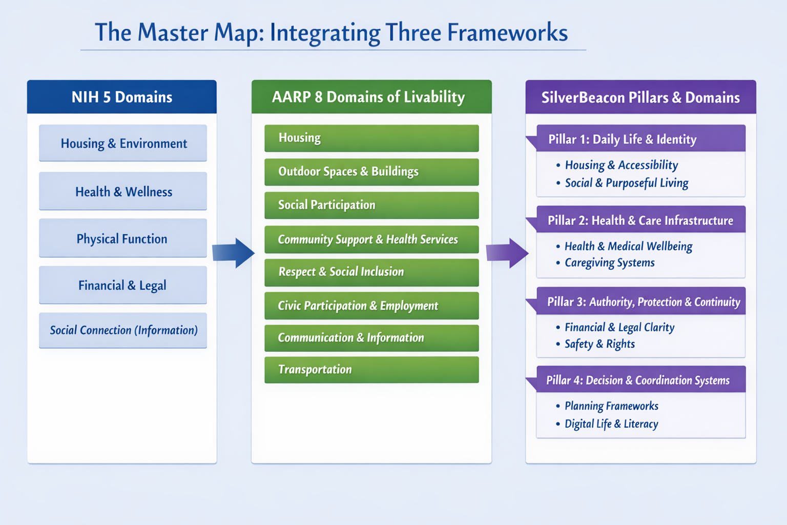 This pillar covers the legal and financial architecture that protects seniors from exploitation and administrative chaos. Without it, minor crises become legal emergencies. With it, families can act quickly and confidently.